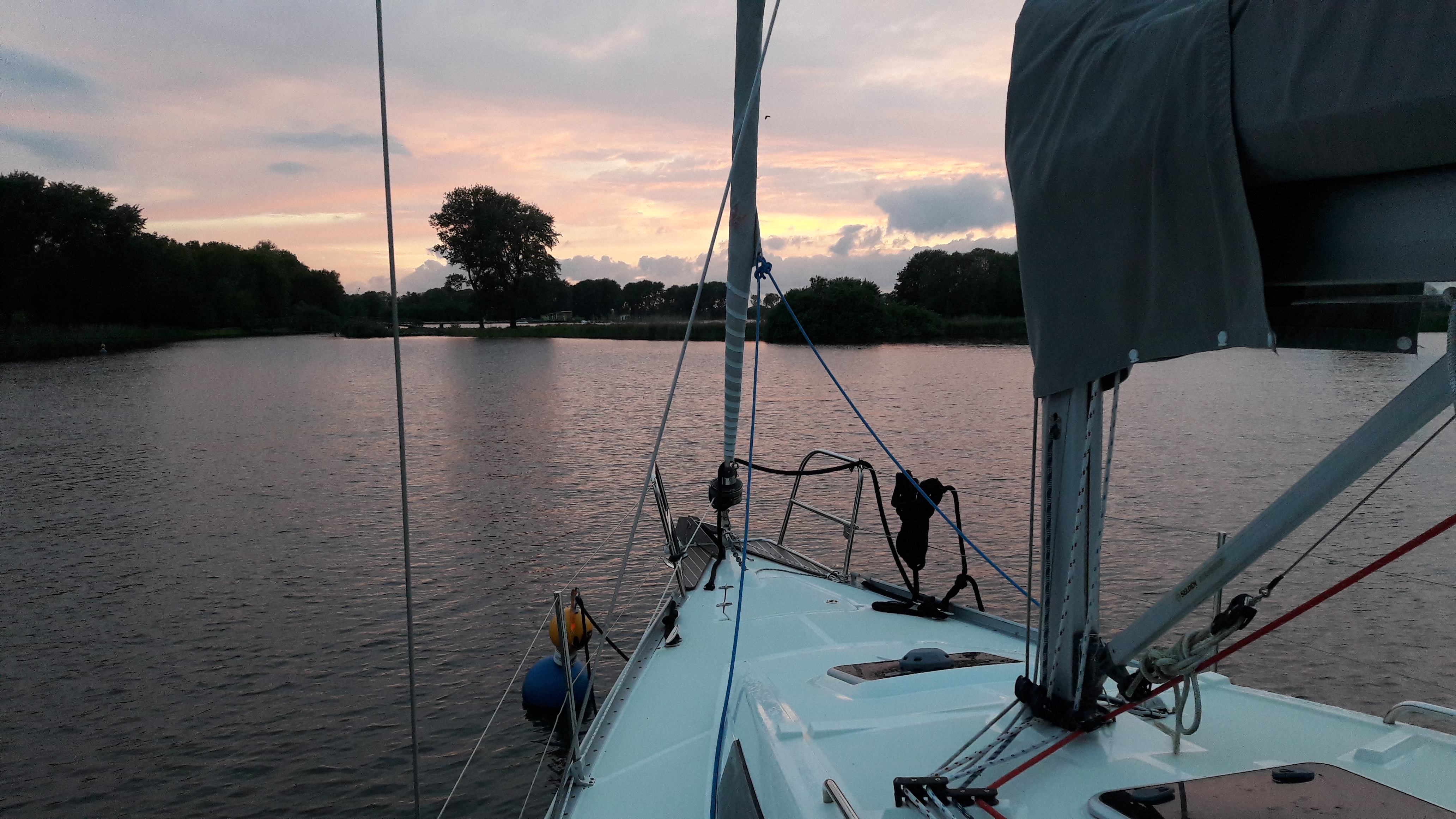 Dann habe ich mein wohl bestes Anlegemanöver Einhand ever gefahren. Rückwärts rein. Vorleinen beide beim Reinfahren übergeworfen. Hinten punktgenau aufgestoppt. Neben mir ein lesender muffeliger Segler der Marke „ich habe ein Boot weil man drauf sitzen kann“ guckte als ob er beleidigt ist, dass ihm ein lustiger Crash entgangen ist 😂. Manchmal passt es eben…