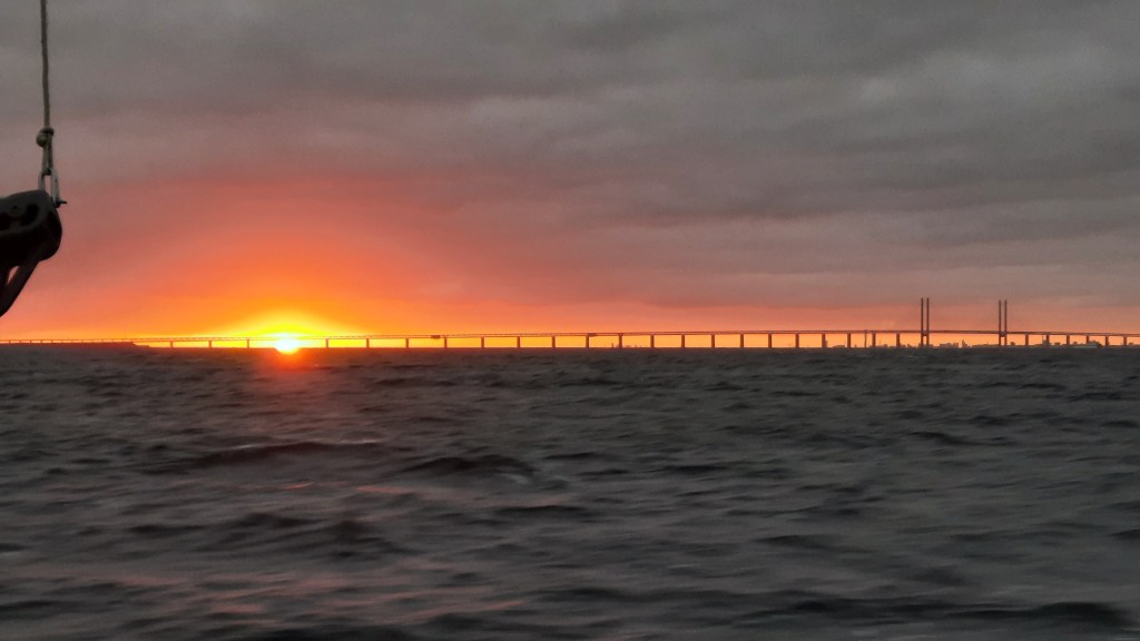 Das Highlight der Nacht war der Aufgang der Sonne, die sich über den nordöstlichen Horizont traute, als wir gerade vor der Öresund-Brücke, der Verbindung zwischen Kopenhagen und Malmö waren. Ein traumhafter Moment.