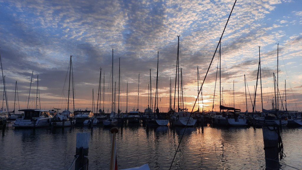 Fast pünktlich um 10:30 Uhr legten wir ab, trotz der angekündigten Winde mit 6 und Böen in 8. In Grömitz war alles ruhig, also los !