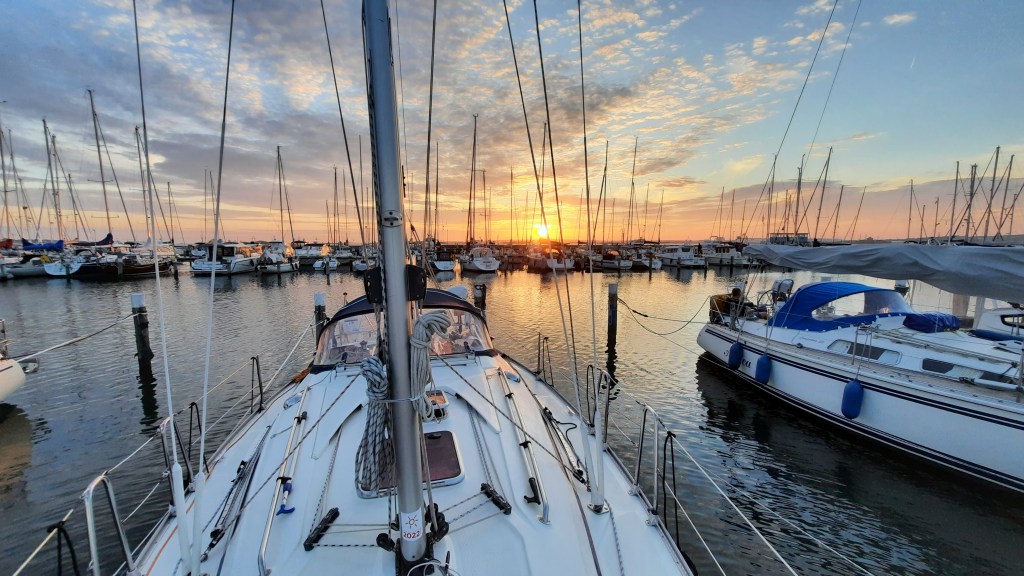 Dafür waren wir erheblich schneller als gedacht: mit 7 Knoten rauschten wir durch die aufgewühlte Ostsee bevor wir kurz hinter Gedser nach 6 Stunden Richtung Norden abbogen. Hier beruhigte sich das Wasser schnell, der Wind blieb. Für das Abendessen haben wir das Boot kurz beigedreht, so dass wir in Ruhe eine schnelle Nudelmahlzeit zu uns nehmen konnten: Fertignudeln mit heißem Wasser übergossen. Naja..kulinarisch geht anders.