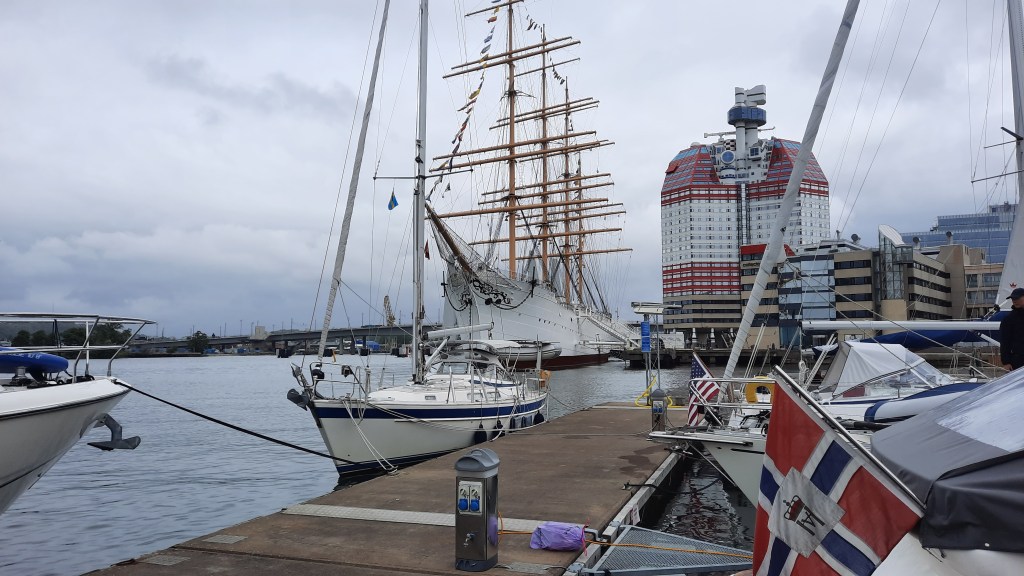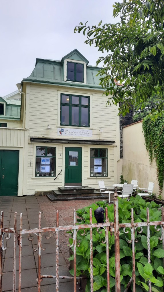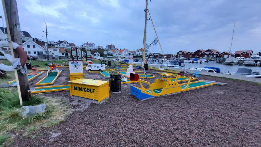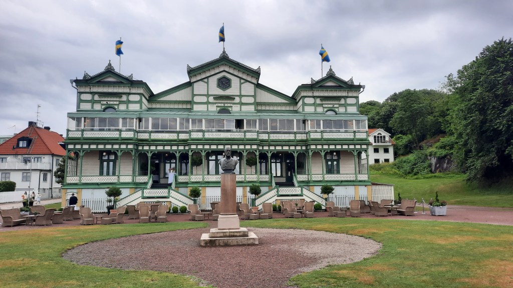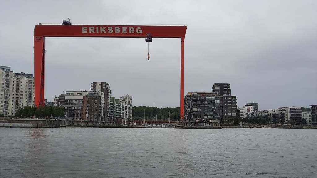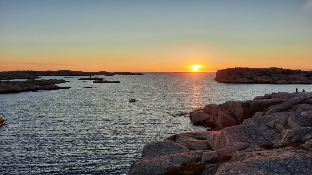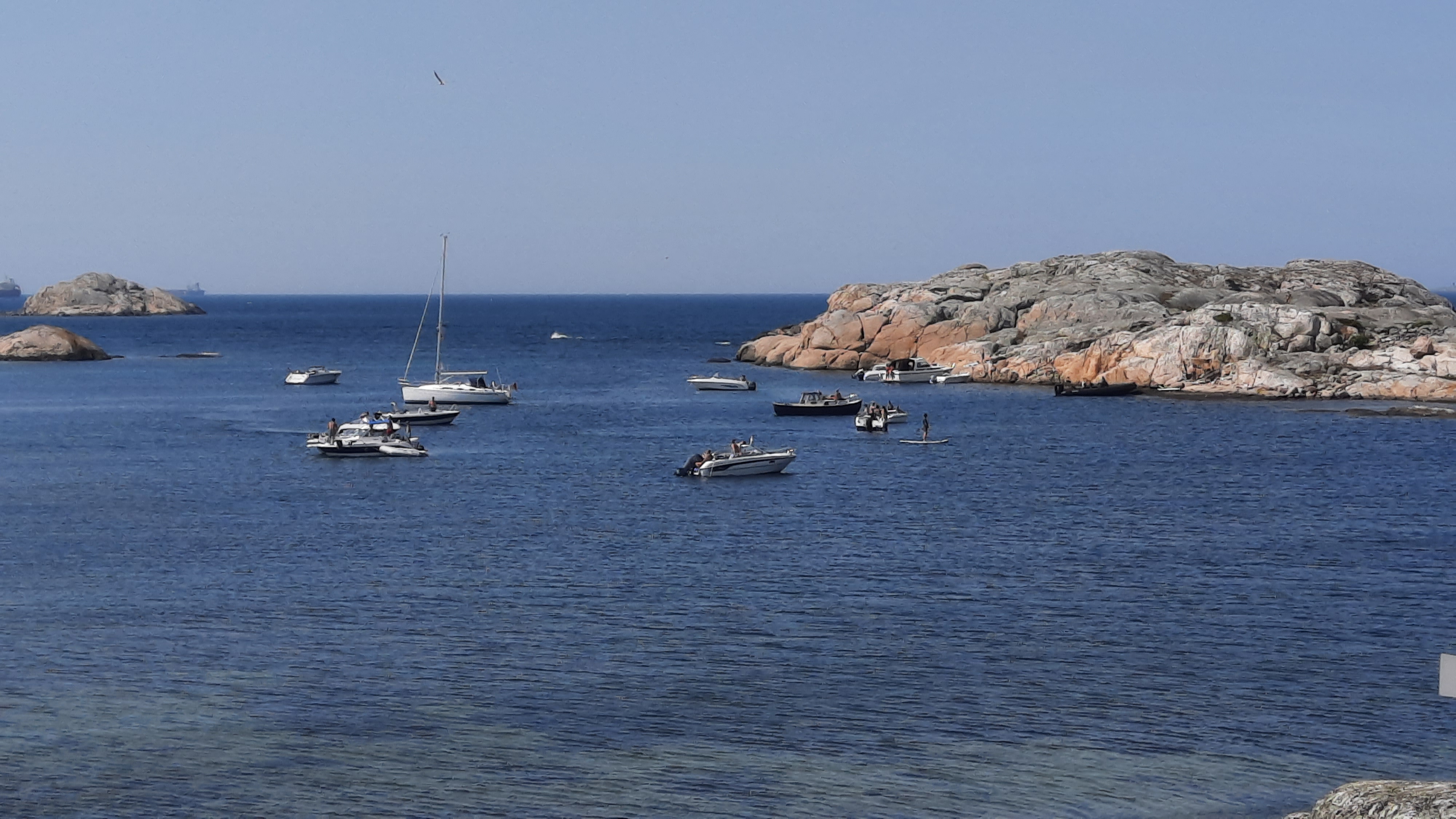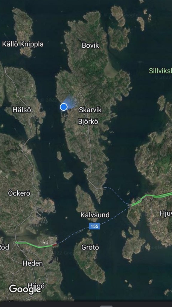 Die Einfahrt in den Hamburgsund war wieder sehr schön. Beidseitig säumten viele rote Bootshäuser das Ufer. Kurz vor dem Hafen kreuzte die Seilfähre auf die Nachbarinsel Hamburgö unseren Weg. Bis sie das jeweils andere Ufer erreicht hatte, konnte niemand den Sund passieren.