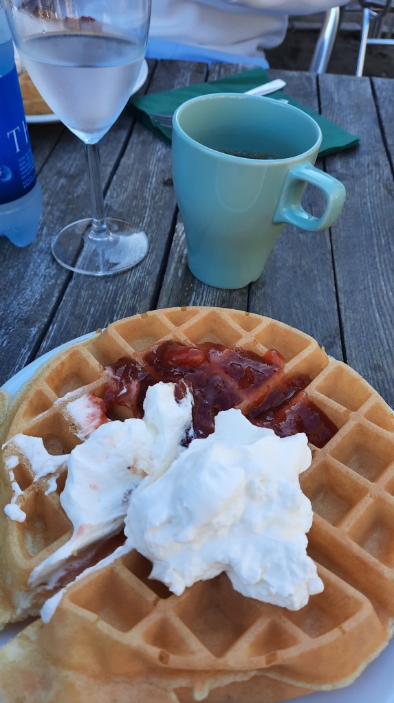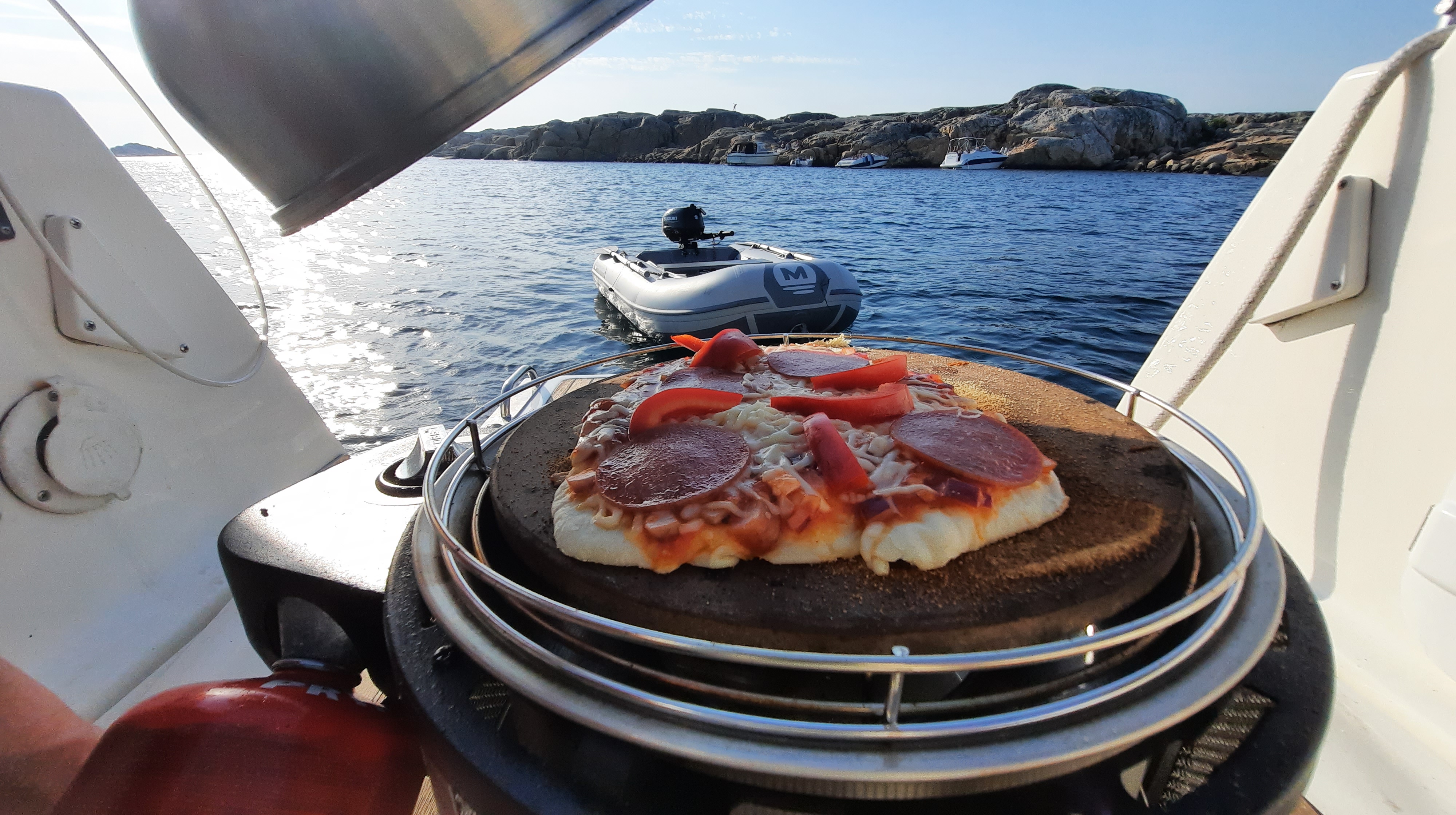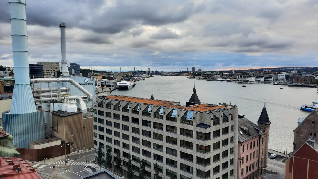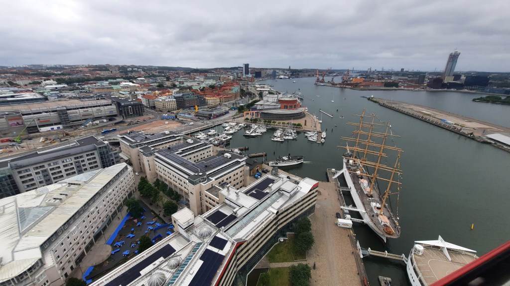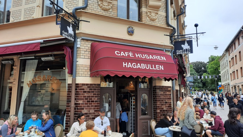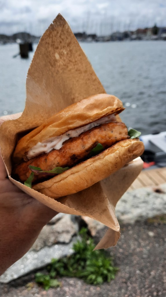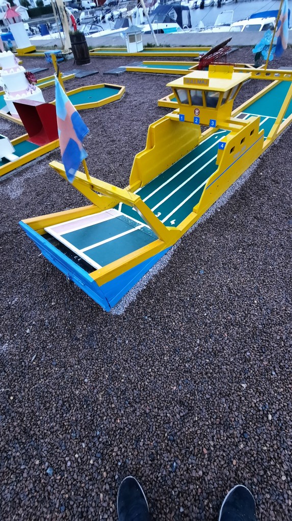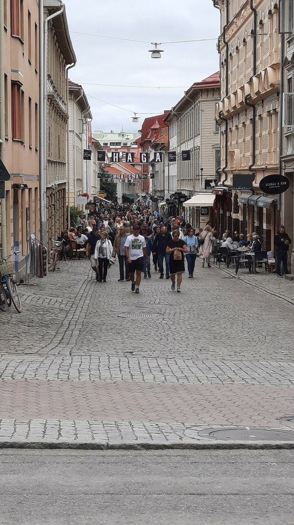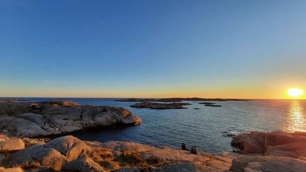 Die Einfahrt in den Hamburgsund war wieder sehr schön. Beidseitig säumten viele rote Bootshäuser das Ufer. Kurz vor dem Hafen kreuzte die Seilfähre auf die Nachbarinsel Hamburgö unseren Weg. Bis sie das jeweils andere Ufer erreicht hatte, konnte niemand den Sund passieren.