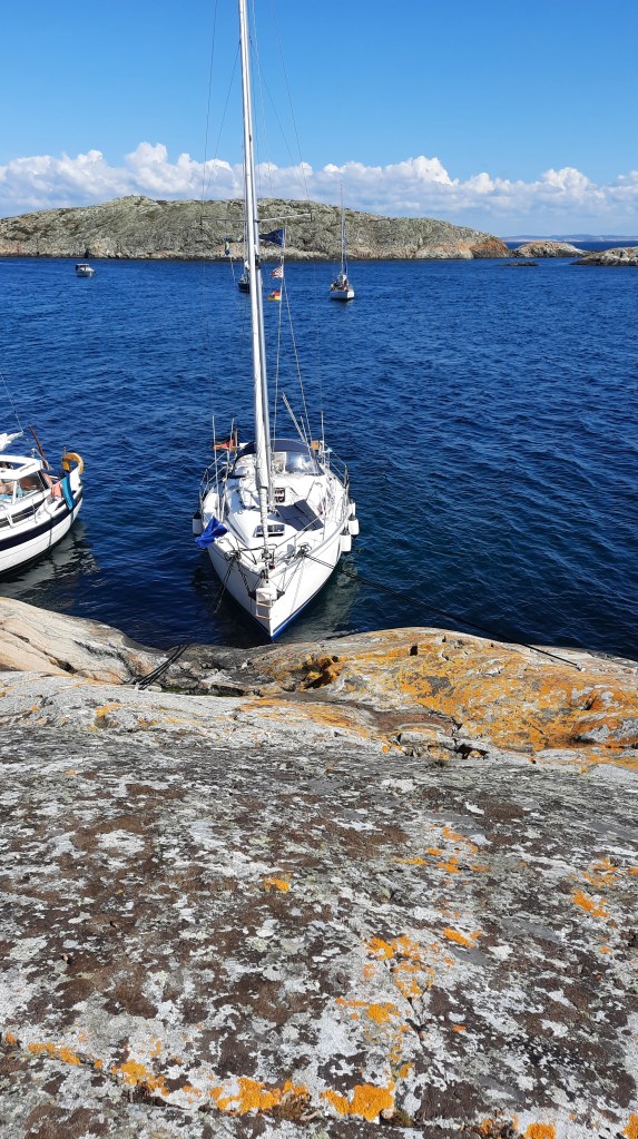 Unser Ziel war Hamburgsund, wo wir wieder einen Liegeplatz vorab gebucht hatten. Vorher wollten wir aber noch die Insel Stenholmen besichtigen. Dort gibt es einen alten Soldatenfriedhof, der nach der Schlacht am Skagerrak im ersten Weltkrieg angelegt wurde.